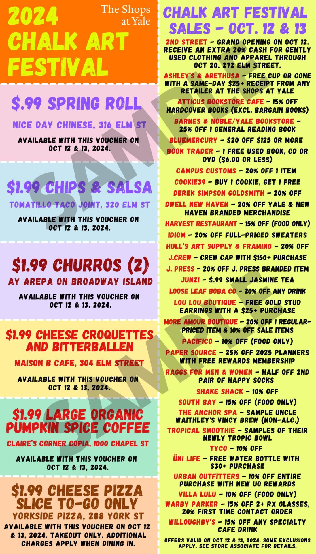 ♥ Lunch specials, $.99 and $1.99 menu items, and exclusive store sales with sales sheets available at The Shops at Yale tables!