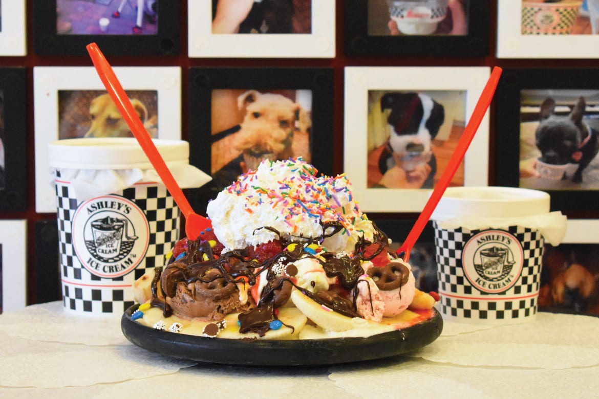 Ashley’s Ice Cream never uses any artificial colors or flavors. All natural, fresh ingredients lead to naturally the best ice cream! But they don’t stop there, whipped cream is whipped fresh in the store everyday, along with fresh baked waffle cones and their famous Bittersweet hot fudge made with all the highest quality chocolates.
