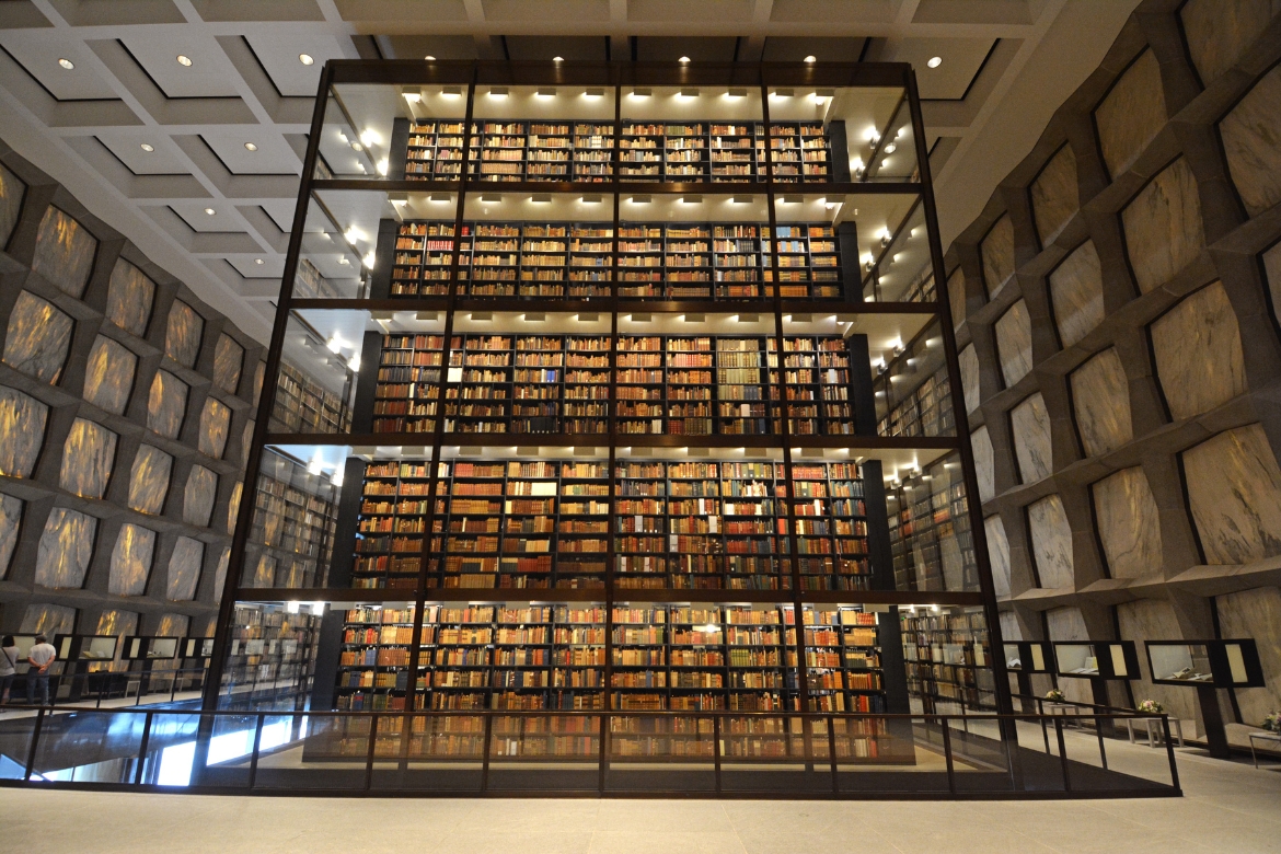 A stunning work of architecture, the Beinecke Rare Book & Manuscripts Library houses a famous collection of the world’s oldest books, maps, and documents. Beinecke’s vast print antiquities range from papyrus artifacts to medieval manuscripts to the original mysterious Voynich Manuscript (yet to be deciphered), and much more. Designed by architect Gordon Bunshaft and opened in 1963, this cube-shaped building is uniquely clad in large “windows” of translucent Vermont marble panels. As the panels diffuse sunlight, protecting the books inside, the interior is bathed in a unique, warm hue. Public visitors are welcome in the exhibition hall on the ground floor and mezzanine.